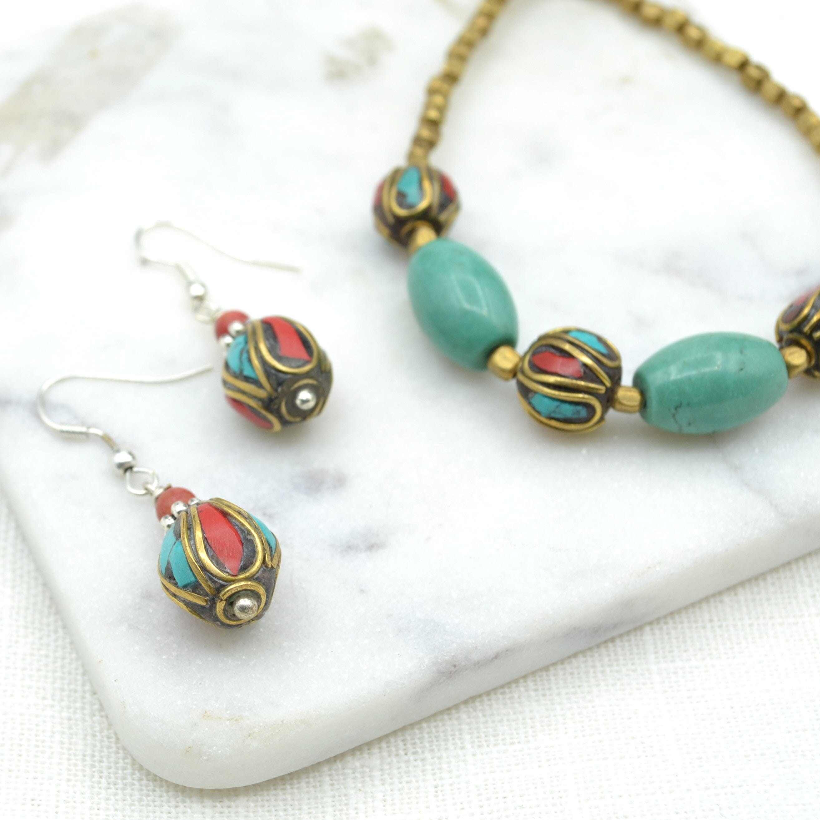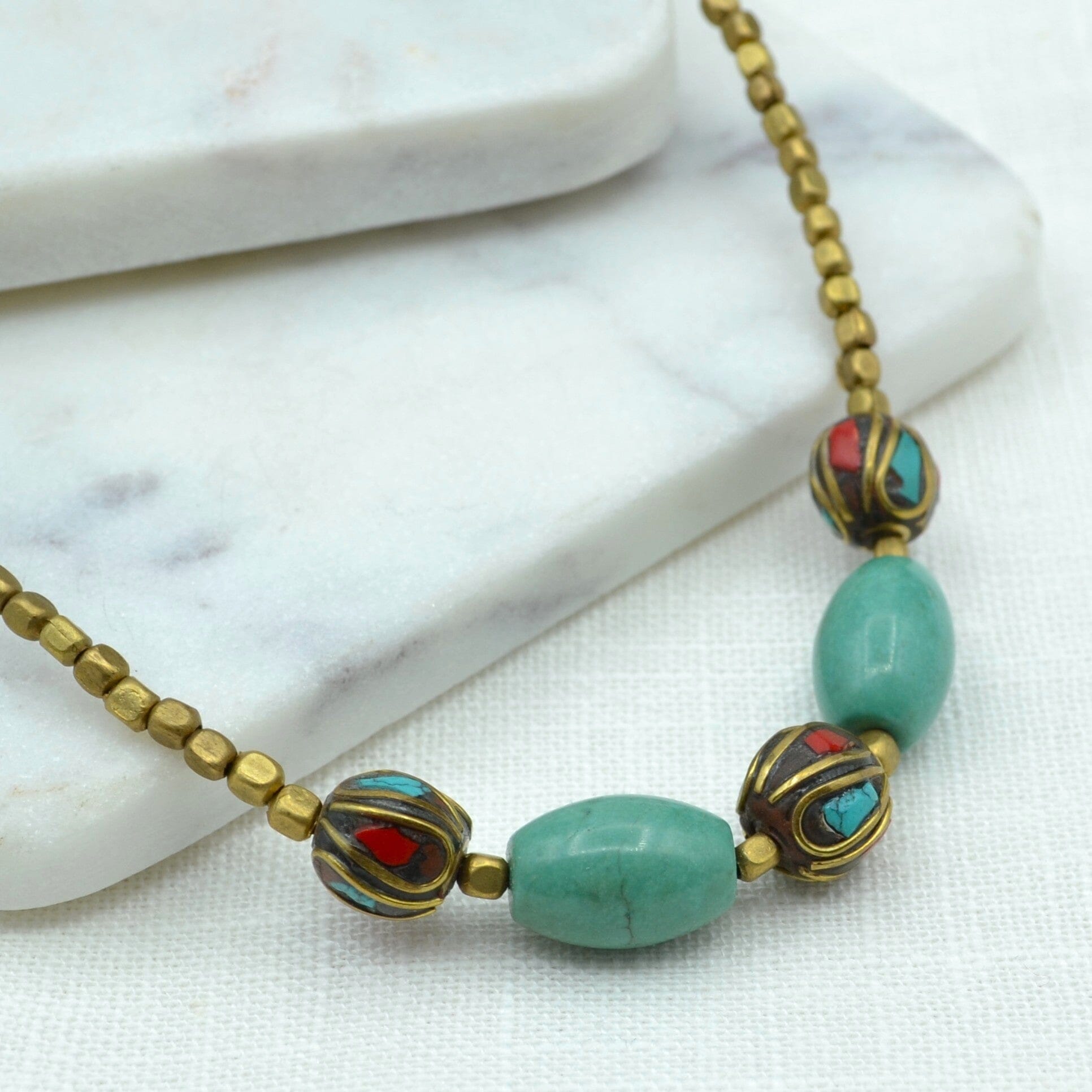 Material: Brass and inlaid Tibetan beads with an adjustable lobster clasp.